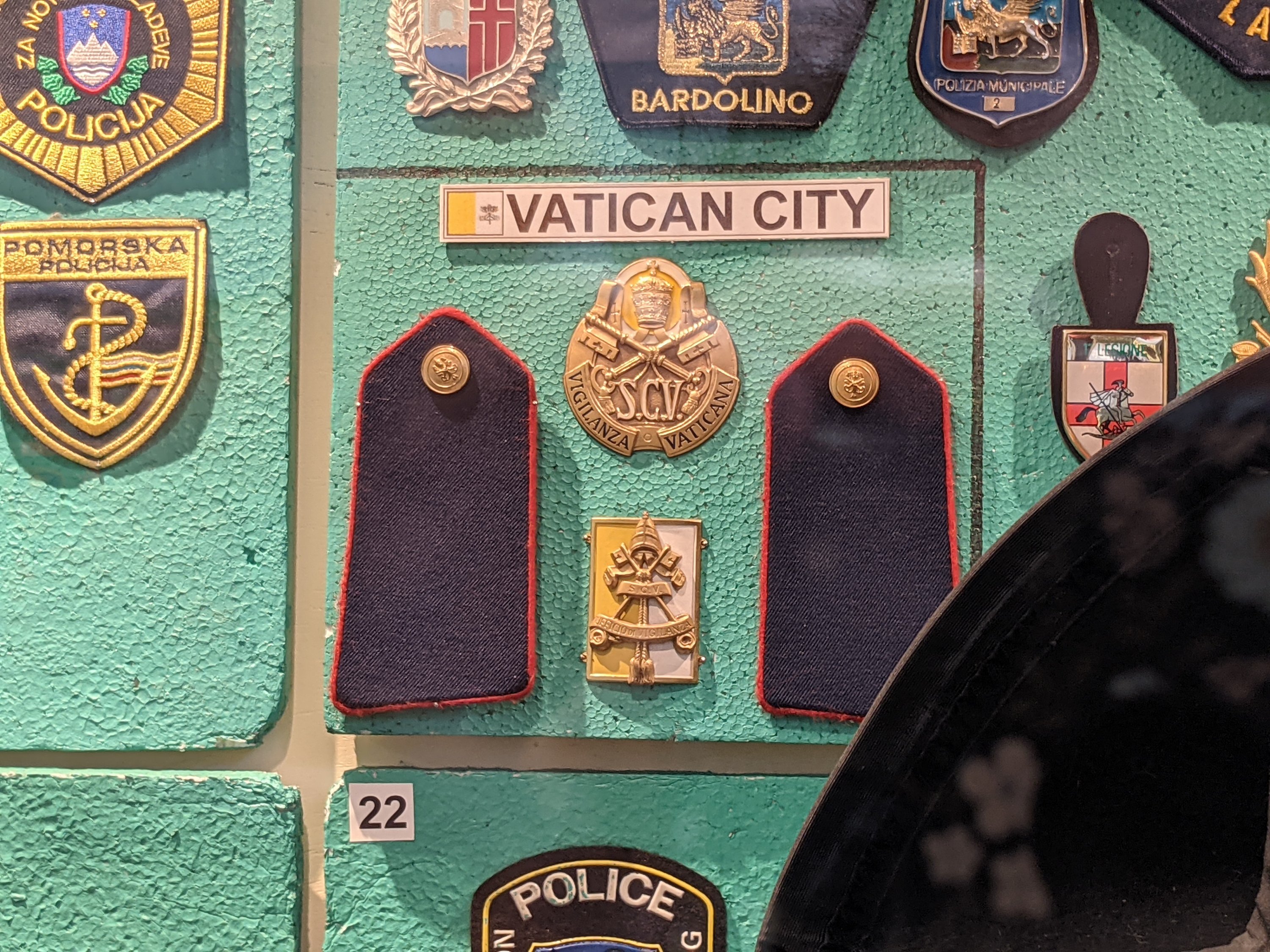 I had the Glasgow Police Museum on my list of places to see, but managed to forget about it until I walked past a sign pointing the way. It’s a small, free museum with two rooms – one is an alright display on the Glasgow Police force over the past two centuries, complete with old uniforms and newspaper clippings about interesting crimes through Glaswegian history. The other room is dedicated to Policing across the world, and here’s what really caught my eye.