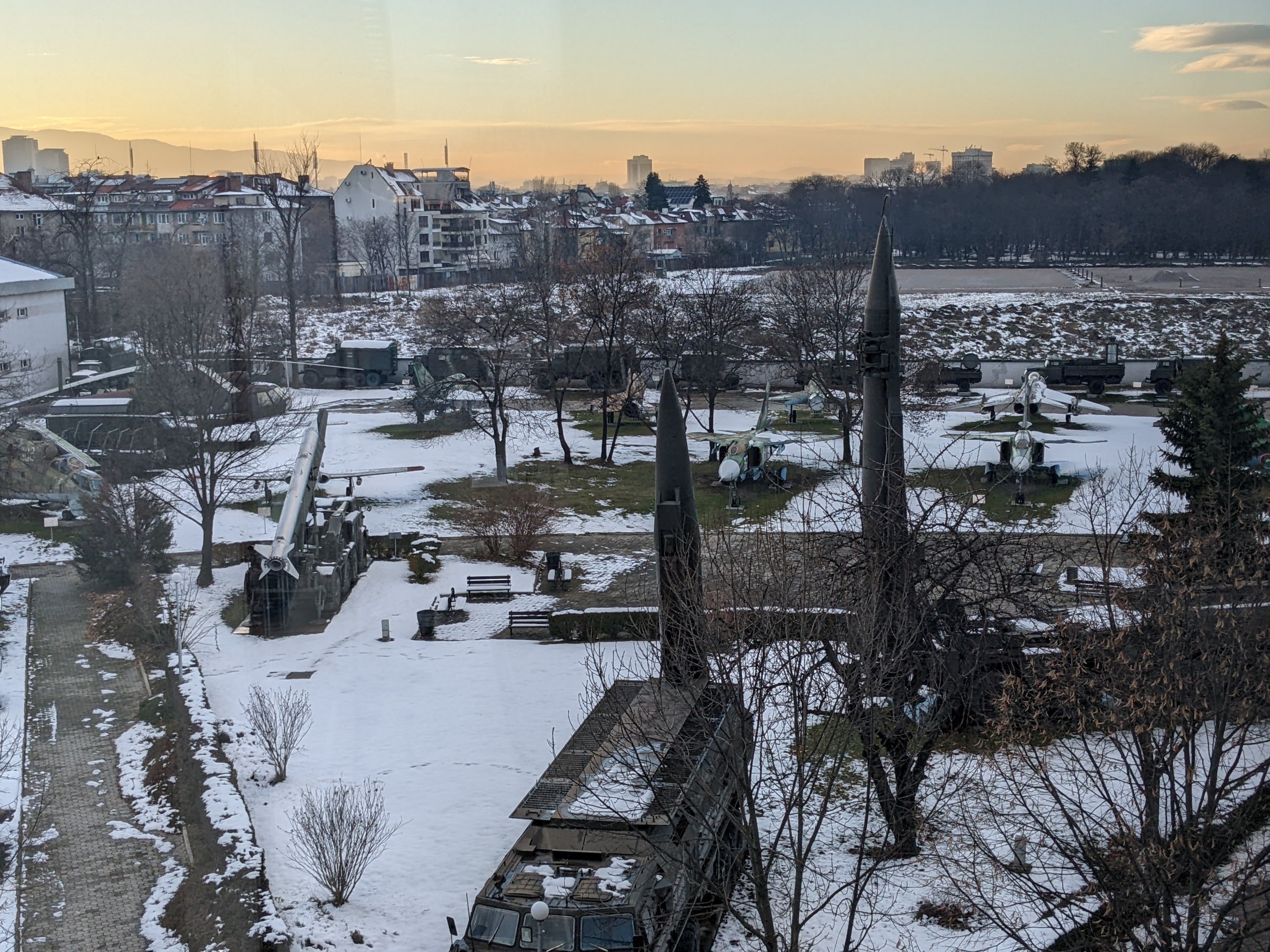 The sole benefit of the museum building was that it gave me some decent angles to take pictures of the military vehicles outside in the evening light. I couldn’t step out onto the little balcony though. Because that would be too engaging for the Bulgarian Military Museum, I suppose.